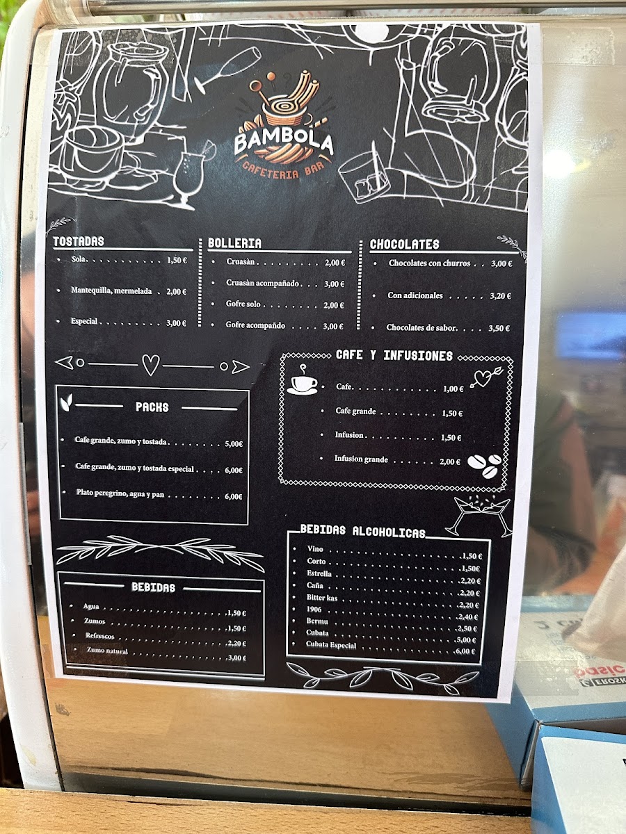 Welcome to Cafetería Bámbola, a charming café nestled in the heart of Padrón at Rúa Real, 10, A Coruña, Spain. A perfect stop for both locals and pilgrims on their journey, this delightful spot is renowned for its warm atmosphere and inviting offerings. With a reputation for excellent coffee and delectable churros, Cafetería Bámbola is a must-visit for anyone looking to indulge in a cozy breakfast or a quick snack while absorbing the vibrant culture of the area.